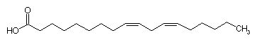 ЖК с двойными связями называются ненасыщенными, без таковых – насыщенными. Двойные связи обычно разделены тремя атомами углерода, поэтому принято обозначать только положение первой двойной связи, считая от метильного (-CH3) конца, который обозначается буквой ω. Например, структура линолевой кислоты (см. рисунок) обозначается так: 18:2ω6 (18 атомов углерода, 2 двойные связи, причем первая из них, считая от метильного конца, располагается после 6-го атома углерода).