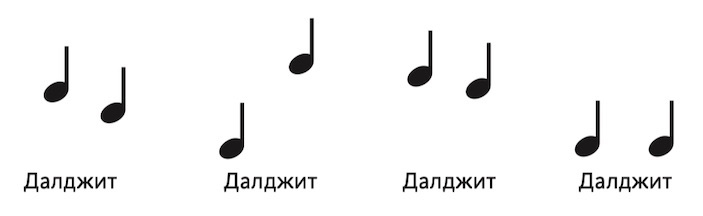Как вы слышите и видите, имя Далджит произносится каждый раз по-своему. Изменяя музыкальное ударение или, если хотите, мелодию, вы не просто повторяете имя.