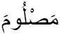 Да, maṣlūma. Что это за грамматическая форма? И что такое √ṣlm? Заметьте, у нас уже был корень slm, но там было другое s! И это другой корень! Корень √slm означает «быть в мире, благоденствовать» и так далее. А здесь у нас корень √ṣlm. И он означает нечто почти противоположное: «быть изувеченным». Видите, как замечательно: достаточно точки — и вот уже различаются корень «благоденствия» и корень «изувеченности». Итак, что значит maṣlūm?