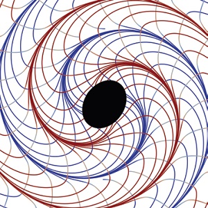 Рис. 16.7. Тендекс-линии вращающейся деформированной черной дыры (Рисунок Роба Оуэна.)