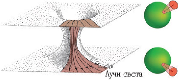 Рис. 15.3. Лучи света, идущие от Сатурна в камеру через червоточину