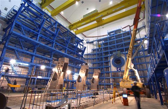 В подземном зале ведется сооружение детектора ALICE.