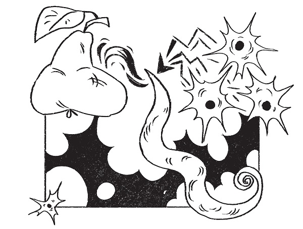 Большую часть своей короткой жизни C. elegans проводит, рыская в поисках пищи — как правило, какой-нибудь разлагающейся органики. Почуяв вкусный запах (например, изоамилового спирта — верного знака гниющих фруктов), червь обычно прекращает блуждания и устремляется прямиком к источнику запаха. Но изредка он почему-то этого не делает или делает не сразу — даже если микроэлектрод, вживленный в обонятельный нейрон, показывает, что заветный аромат пойман. Группе Гордаса удалось расшифровать нейронный механизм этого непостоянства.