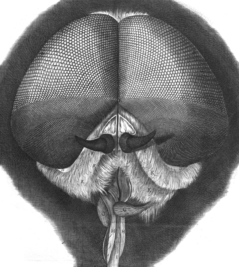 Гук вслух размышлял об оптике своей «Ильницыпчело видки» («Какими чрезвычайно замысловатыми и нежными должны быть составные части среды, которая передает свет, когда мы находим инструмент, созданный для его получения или преломления, чрезвычайно маленьким?»19), но именно Левенгук спустя тридцать лет первым осознал, что изображение, которое передается в мозг мухи, раздроблено, что каждая фасетка глаза улавливает отдельное изображение. Ван Левенгук изложил свои мысли в восхищенном письме в Королевское общество, опубликованном в 1695 году — в эпоху, когда науки и искусства всё еще договаривались о своем официальном разводе. «То, что я наблюдал, глядя в микроскоп, — сообщил он коллегам, — представляло собой перевернутые изображения горящего пламени: не одно изображение, а около сотни изображений. Какими бы маленькими они ни были, я видел, что все они движутся»20.