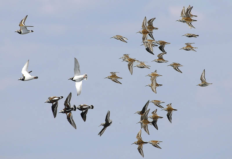 Все сезоны жизни, кроме гнездового, большинство птиц предпочитают объединяться в стаи. Некоторые птицы образуют смешанные межвидовые стаи. В таких ассоциациях совместное наблюдение за опасностью приносит выгоду и снижается пищевая конкуренция внутри стаи. Кулики образуют смешаные группы на неравных условиях для участвующих в них видов. Главные виды, виды «А», берут на себя бремя следить за опасностью, а виды «Б» лишь пользуются их «услугами». Однако виду «Б» приходится следовать за видом «А», что, оказывается, не так уж удобно.