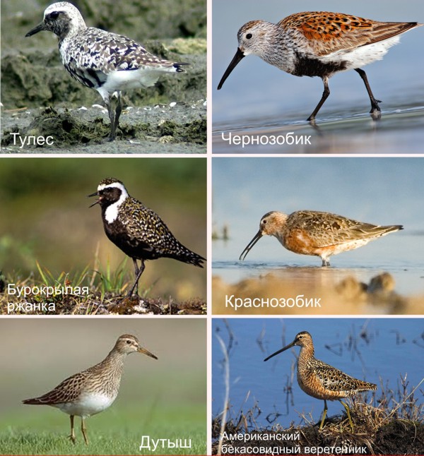 Орнитолог Звенигородской биологической станции МГУ им. М.В. Ломоносова Вадим Гаврилов проанализировал многолетние данные наблюдений за межвидовыми ассоциациями мигрирующих куликов для оценки выгод такого объединения. Работы проводились в течение нескольких лет на стационарах орнитологического отряда ИБПС ДВО РАН в Якутии, на о. Новая Земля и Югорском полуострове. Основным методом изучения было сопоставление бюджетов времени: каждые 5 минут хронометрировали стаю и определяли соотношение птиц в разных состояниях. Это соотношение принимали за соотношение длительности соответствующих форм активности. Также производили индивидуальное хронометрирование отдельных птиц для расчета среднего суточного бюджета времени. Затраты энергии птиц определяли методом пересчета бюджета времени в бюджет энергии. Таким образом, сравнивая поведение птиц в одновидовых и смешанных стаях, можно определить энергетические выгоды от объединения птиц. Мигрирующие кулики образуют стаи, в том числе и смешанные. В объединении двух видов куликов один является главным (его именуют вид «А»), а второму дали название «паразит» или «паж» (рисунок 1). Вид «А» главный, поскольку его поведение никак не изменяется в присутствии другого вида. А вот другой вид, «Б», вынужден следовать за главным в любое время, в том числе и во время кормления. В. В. Гаврилов показал, что существует единый уровень энергетических затрат у мигрирующих куликов, и общие затраты энергии на все формы активности не зависят от наличия ассоциации с другими видами. При этом виды «А» ведут себя совершенно независимо от присутствия видов «Б» как по показателям бюджета времени, так и по энергетическим затратам, а виды «Б» в присутствии главного вида значимо увеличивают время кормежки и отдыха за счет снижения затрат на бдительность. Например, чернозобик в «своей» стае тратит на кормежку 41% всего бюджета времени и 12% на бдительность, в присутствии тулеса (главного вида) - 46% занимает кормежка и только 2% (!) бдительность. Сходным образом выглядит картина энергетических затрат птиц. Интересно, что такая потеря осторожности приводит к противоположным результатам в поведении: «более бдительные» чернозобики в собственных стаях подпускают человека значимо ближе, чем полагающиеся на главный вид птицы (минимальная дистанция 4 м против 37 м!).