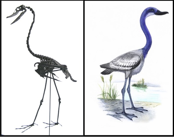 Одни из наиболее интересных находок среди птиц обнаружены в ветви Galloanseres, которая включает два родственных современных отряда – курообразные и гусеобразные (Galliformes, Anseriformes). Наиболее примитивные представители этой ветви (семейство Gallinuloididae) обнаружены в раннем и среднем эоцене Северной Америки и Европы. Эти птицы схожи с курообразными строением клюва и некоторыми морфологическими чертами скелета. С другой стороны некоторые признаки вполне «гусеобразные»: в строении черепа, плечевого пояса и целого ряда деталей морфологии скелета. Лишь в некоторых случаях можно сказать, что признаки имеют действительно промежуточный облик. Таким образом, «куры» сначала «получили» свою голову, а уж потом их гусеобразное тело приобрело черты современных курообразных. В то же самое время (в эоцене) обитали древние гусеобразные (Presbyornithidae) (см. иллюстрацию). У них, напротив, совсем «утиный» череп, а вот скелет имеет настолько более примитивную морфологию, что безголовые ископаемые остатки этих птиц ученые раньше относили к более примитивным таксонам, например, фламингообразным. Сходная ситуация наблюдается и в другой филогенетической ветви Новонебных птиц – Neoaves. Были найдены ископаемые переходные формы, имеющие по большей части такую же мозаичную морфологию, между поганками и фламинго (род Turnipax), соколообразными и попугаями, и др. Тот факт, что голова эволюционирует быстрее, по-видимому, говорит о ведущей роли отбора по пищевой специализации у птиц на этом промежутке времени. Важно заметить, что многие находки подтверждают родственные связи, установленные методами молекулярной систематики.