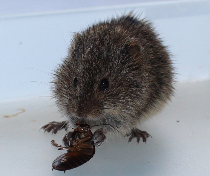 Путь к этой гипотезе был довольно долгим. Изучая пространственное взаимодействие мелких млекопитающих с рыжими лесными муравьями (ЖОБ, 2016, № 5, см. популярный синопсис «Война и мир мышей и муравьев» ), мы решили проверить, каким образом мышевидные грызуны избегают этих агрессивных и кусачих насекомых: возможно, зверьки опознают характерный запах и могут заранее скрыться. Лабораторные эксперименты проводились с полевыми мышами. На наше удивление, первый же тест на избегание запаха муравьев мыши не прошли, наоборот, вата, на которой побывали насекомые, их привлекала. Поместив в экспериментальную арену мышь и десяток муравьев, мы обнаружили настоящего волка в мышиной шкуре. Полевые мыши, не боясь укусов и брызг муравьиной кислоты, направленных им в глаза, убивали муравьев и поедали их целиком, включая усы и ноги. Такого еще никто не видел. Среди грызунов признанный охотник на опасных беспозвоночных, включая скорпионов и ядовитых жуков это кузнечиковый хомячок Onychomys torridus. Но у этого зверя есть специфические морфологические и физиологические адаптации к питанию ядовитой добычей. Полевая мышь, как оказалось, вооружена лишь поведенческой адаптацией - стереотипом охотничьего поведения. Один из родоначальников этологии Конрад Лоренц так описывал охотничий стереотип маленького котенка: он «убивает» вашу ногу, демонстрируя такой же захват лапами сверху и снизу и тот же «смертельный укус», что и лев. Стереотипы, то есть, поведенческие последовательности, состоящие из устойчиво повторяющихся элементов, входят в систему поведенческих адаптаций. Таковы не только характерные проявления пищевого поведения, но и, скажем, брачные ритуалы. Боевые способности полевой мыши навели нас на мысль о том, что остатки беспозвоночных, которые регулярно находят в желудках и фекалиях разных видов грызунов, могут быть результатом не сбора мертвых или малоподвижных животных, а активной охотничьей деятельности.