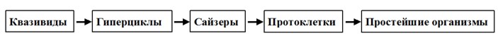 Рассмотренные модели позволяют представить возможный сценарий возникновения простейших организмов (рис. 4).