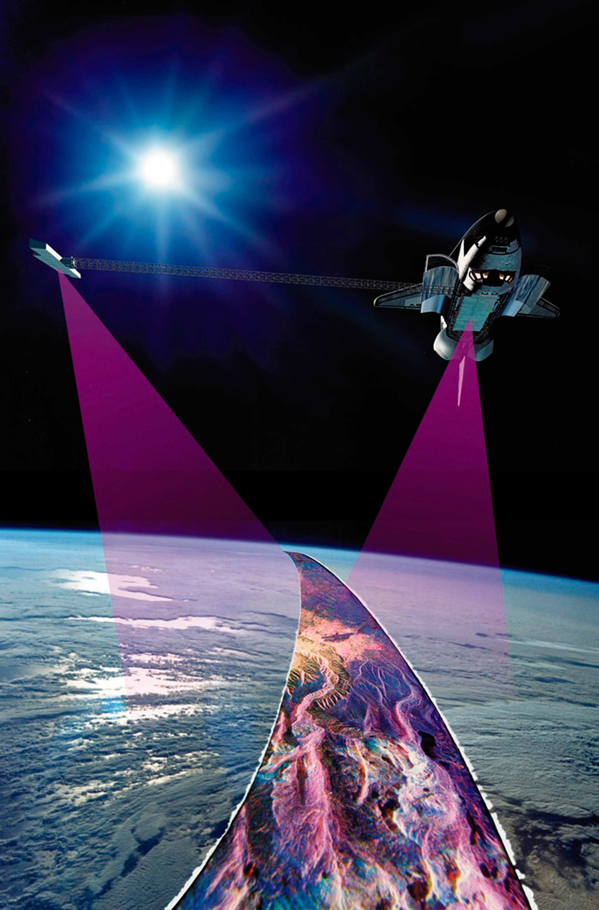 На космическом челноке «Индевор» технологию радиолокационной интерферометрии реализовали следующим образом. Одна антенна была расположена внутри «Индевора» — в его грузовом отсеке. А вторая располагалась снаружи — на конце раздвижной металлической фермы. Эта ферма имела 87 секций и длину 60,95 м. Для 2000 года это был рекорд. Никогда еще не выводили в космос столь длинную жесткую конструкцию.