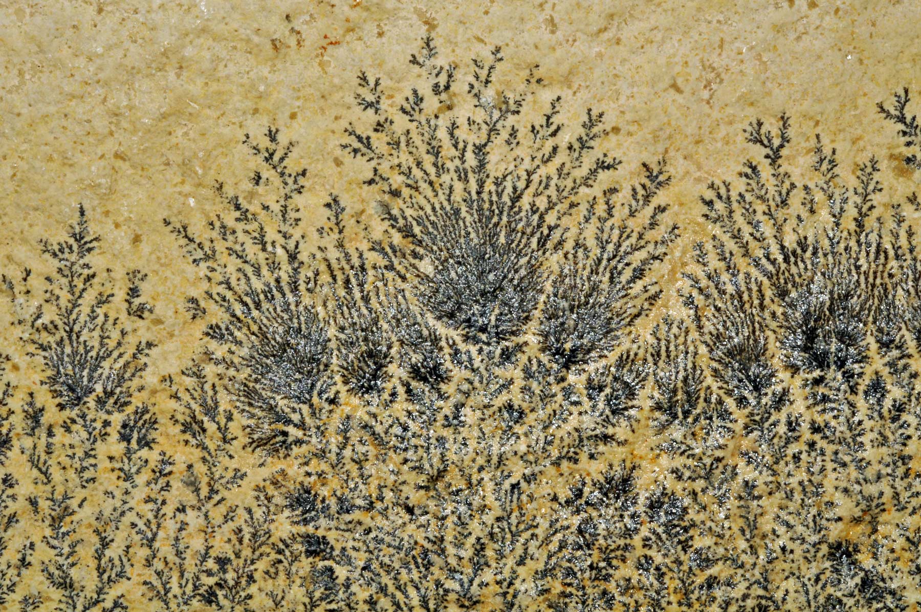 Дендриты пиролюзита (черного цвета) в зольнхофенском известняке. Фото с сайта commons.wikimedia.org. О других находках в зольнхофенском известняке см. новость Птерозавры-рамфоринхи охотились на головоногих моллюсков юрского периода и картинку дня Загадочные тилакоцефалы с большими глазами