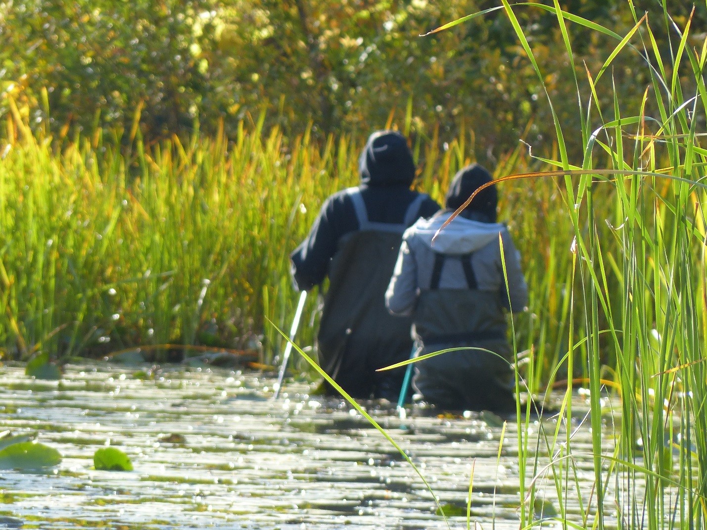 Для начала нужно найти зверька — чтобы понимать, где выхухоль сохранилась и в каких количествах. Образ жизни выхухоли сильно усложняет работу исследователей. Она очень скрытная и осторожная. Зверьки живут в норах и выбегают из них, только чтобы поесть на дне водоема, максимум на 4–5 минут. С таким образом жизни наблюдения за выхухолью в природе совершенно неэффективны. Можно сутками (а то и годами) сидеть у водоема и так ничего и не увидеть. Поэтому для учета этого зверя существуют специальные методики. Одну из них вы можете наблюдать на главном фото.