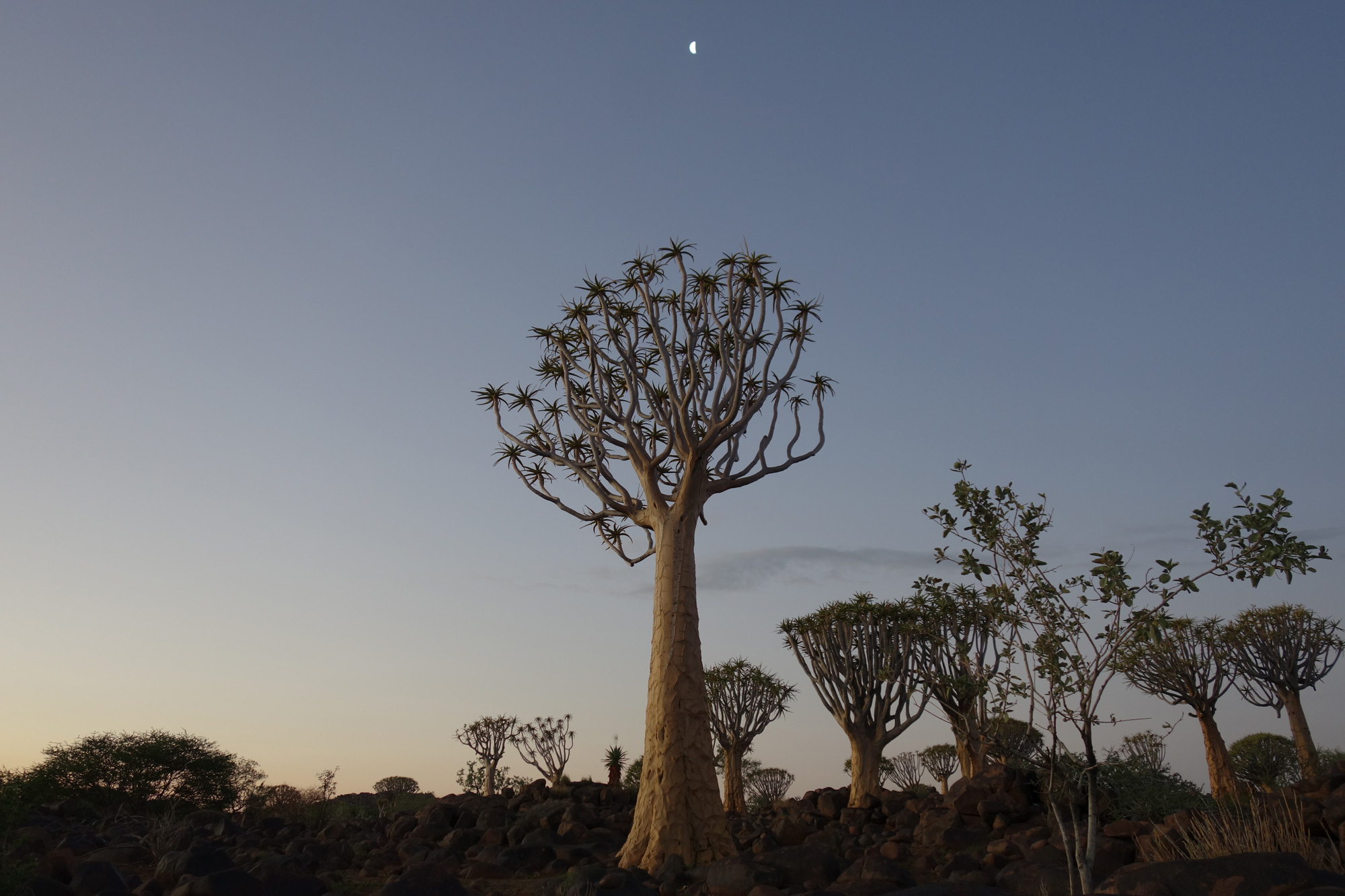 Лес колчанных деревьев после захода солнца. Фото Михаила Воловича, Намибия, Quiver Tree Forest, 2 марта 2020 года