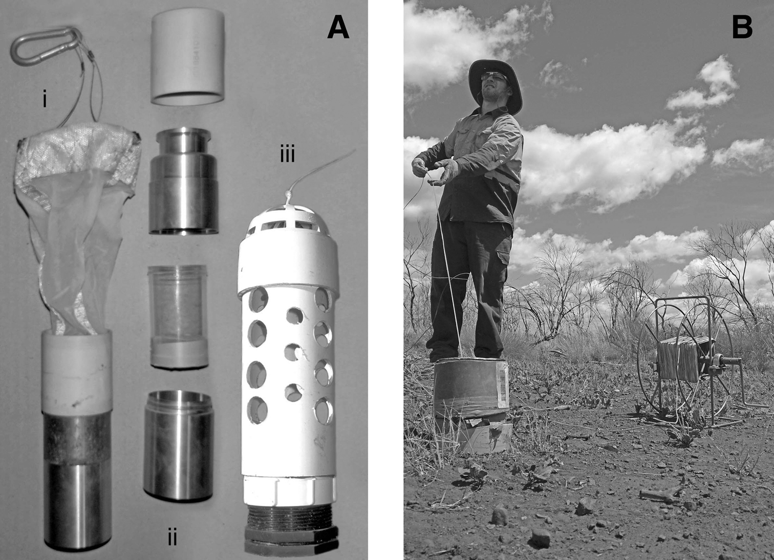 Оборудование, используемое для сбора троглобионтов в буровых скважинах. i —сеть для отлова, ii — она же в разобранном виде, iii — ловушка. Фото из статьи S. A. Halse, G.B. Pearson, 2014. Troglofauna in the vadose zone: comparison of scraping and trapping results and sampling adequacy
