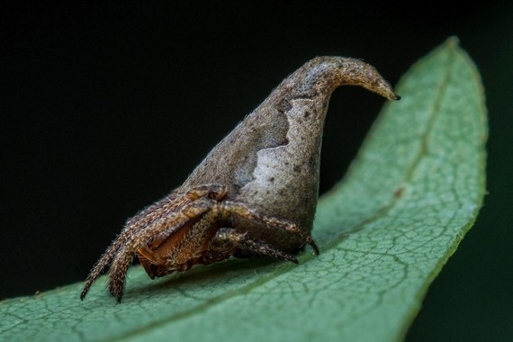 Когда смотришь на это фото самки фрина, или жгутоногого паука, с детенышами на спине, сразу вспоминается Джеральд Даррелл и его Вильгельмина. Помните, как он трогательно описывает в книге «По всему свету» свою дружбу со жгутоногой паучихой? «Это было благовоспитанное маленькое дитя из числа десятка жгутоногих паучат, с которыми я близко познакомился после того, как — можно сказать, совершенно случайно — поймал их мамашу... Я успел сильно привязаться к Вильгельмине и гордился ею: насколько мне было известно, до меня никто не содержал в неволе жгутоногого паука. К тому же она стала вполне ручной. Стоило мне постучать пальцами по коробке, как Вильгельмина выходила из-под кусочка коры и отвечала взмахами ногощупалец. Если я затем просовывал руку в ее убежище, она забиралась на мою ладонь и преспокойно поедала столь любимых ею слизней».