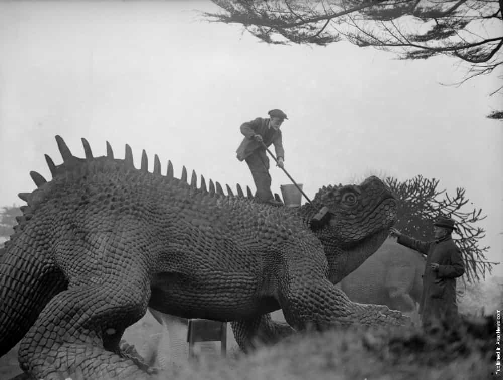 Чистка скульптуры гилеозавра. Фото с сайта pinterest.es, 1927 год