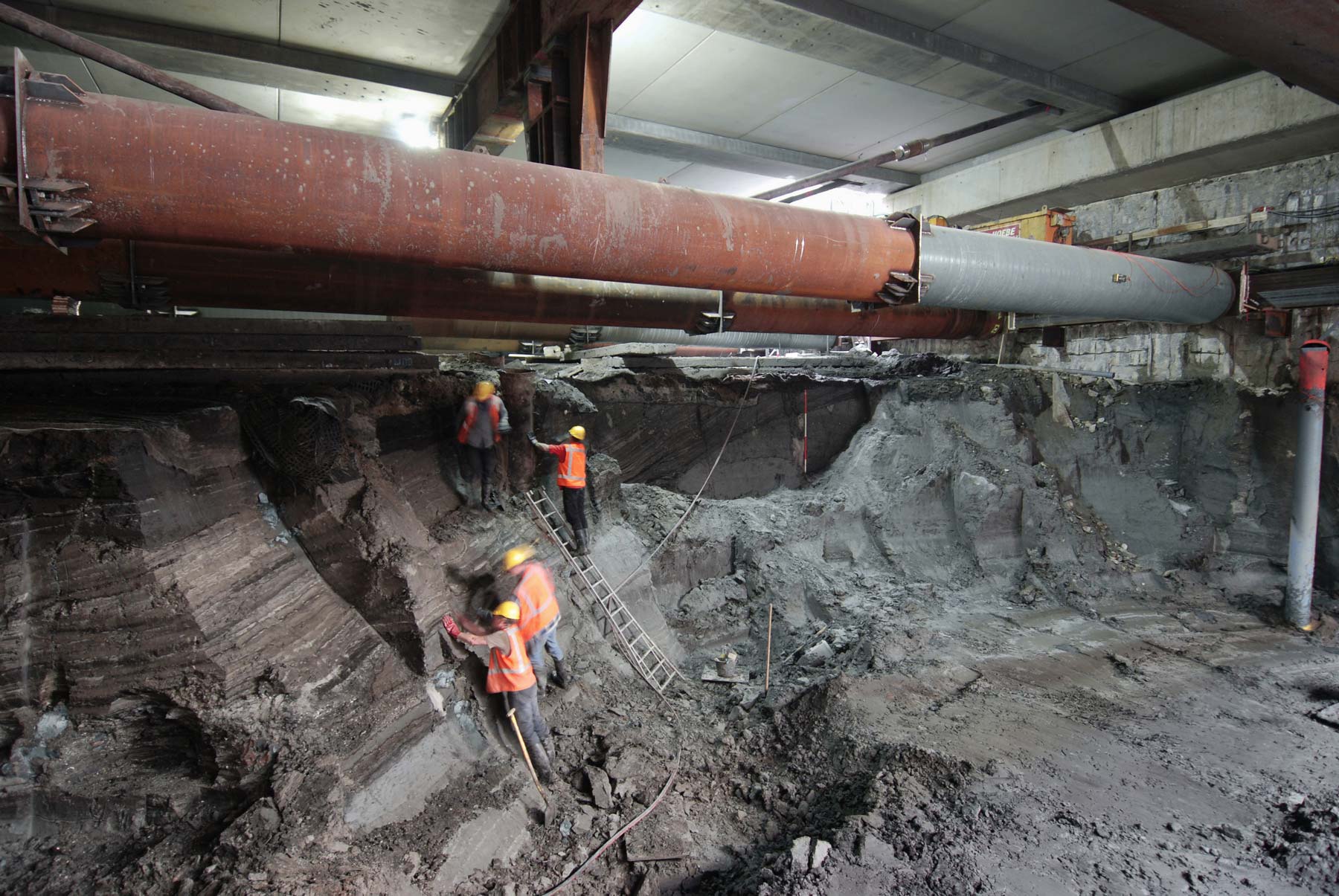 Метро строили по траектории реки, чтобы избежать соприкосновения со зданиями и не нанести ущерб историческому центру города. Для этого решили просверлить туннель глубиной 25–30 метров прямо под жилыми домами. Этого оказалось достаточно, чтобы добраться до геологических слоев 20–30-тысячелетней давности. Водный путь пришлось полностью откачивать, что дало археологам редкую возможность исследовать весь спектр когда-либо попадавших в реку предметов.