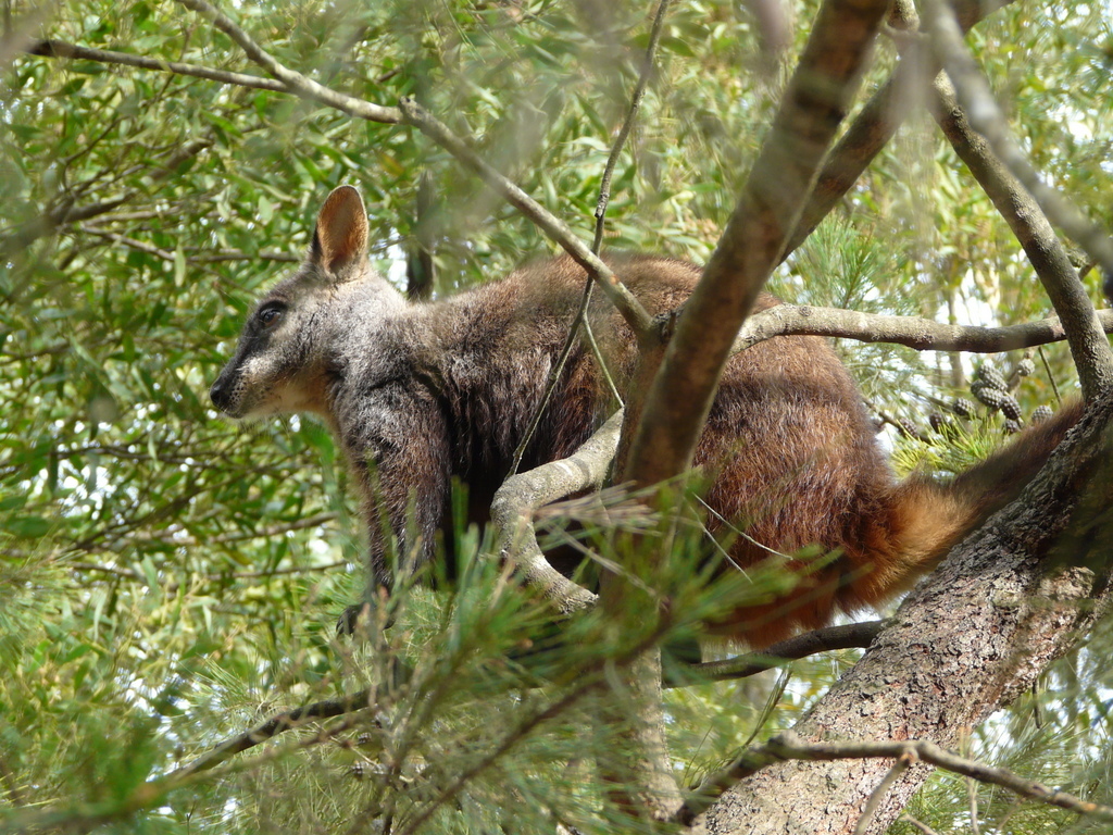 Несмотря на название, этот кистехвостый скальный валлаби (Petrogale penicillata) довольно уверенно чувствует себя в кроне дерева. Фото © Simon J. Tonge с сайта eol.org