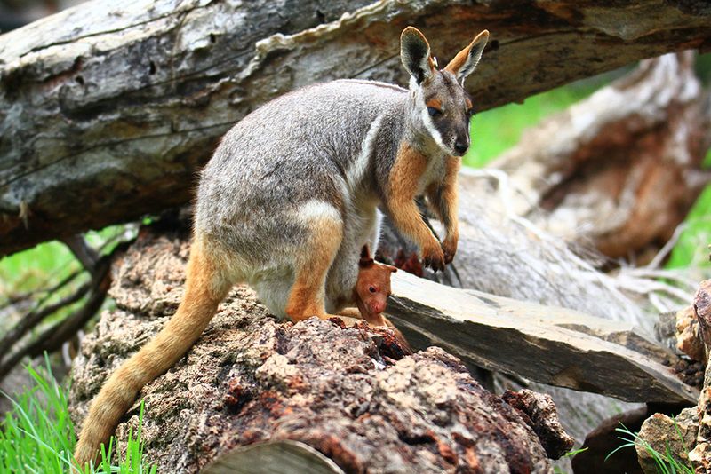 Разведение в неволе порой преподносит сюрпризы: например, в 2014 году в зоопарке Аделаиды произошла трагедия, когда упавшая ветка погубила самку кенгуру Гудфеллоу, оставив ее пятинедельного детеныша сиротой. В таком нежном возрасте выкормить малыша вручную было невозможно, поэтому работники зоопарка приняли необычное решение: они поместили сироту в сумку самки кольцехвостого кенгуру (Petrogale xanthopus) из рода скальных валлаби. До этого в зоопарке уже проводили эксперименты по подсаживанию детенышей вымирающих видов в сумки других самок, но это был первый случай, когда «усыновление» решили провести между столь дальними родственниками. К счастью, приемная мать приняла подкидыша, и еще три с половиной месяца кормила его своим молоком, пока, опасаясь за судьбу детеныша, работники зоопарка не взялись докормить его самостоятельно.