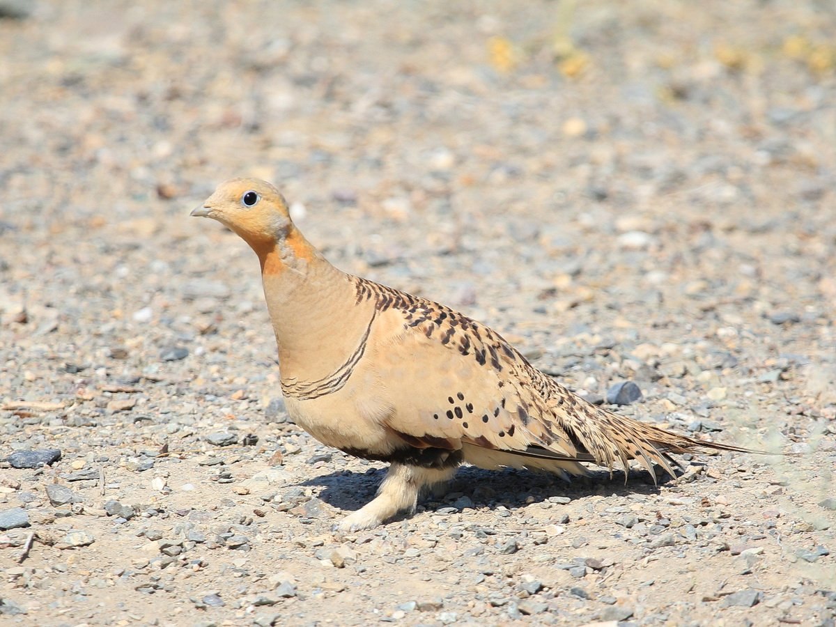 На фото изящно выставила свою мохнатую ножку саджа (Syrrhaptes paradoxus), птица семейства рябковых, распространенная от Каспийского моря до северо-востока Китая. Ее ножки скорее напоминают лапу зверя, чем птичью ногу: задний палец полностью отсутствует, а укороченные три передних срастаются до когтей и имеют общую жесткую подошву. Когти широкие, притупленные, напоминают копыта. Лапка сверху оперена до когтей и очень напоминает заячью. Из-за такого строения ног птицу также называют копыткой. Название же «саджа», вероятно, происходит от тюркского слова «саджи», что означает «воркующая»: звуки, которые издает птица в полете, и правда чем-то напоминают воркование, послушайте их здесь.