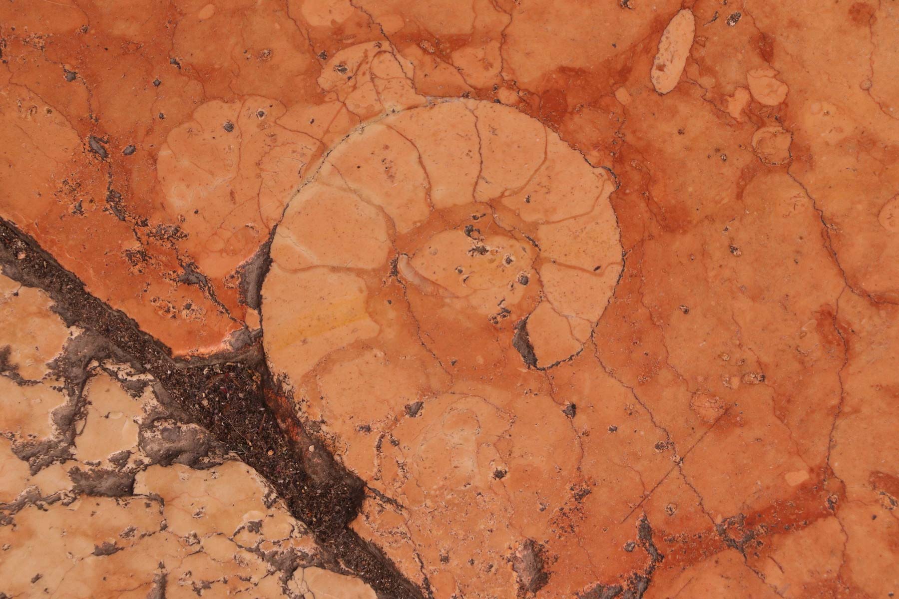 Прогуливаясь прошедшей весной по центру итальянской Болоньи от базилики Сан-Петронио в сторону площади Гальвани (Piazza Galvani) и Архигимназии (Archiginnasio of Bologna), я заметил под ногами большие плиты красноватого и серого известняка, устилающие полы аркады. В этих плитах декоративного камня встречаются раковины вымерших головоногих моллюсков аммонитов, как на фото выше, из-за которых порода получила свое название — Rosso Ammonitico, что в буквальном переводе с итальянского означает «красный аммонитовый».