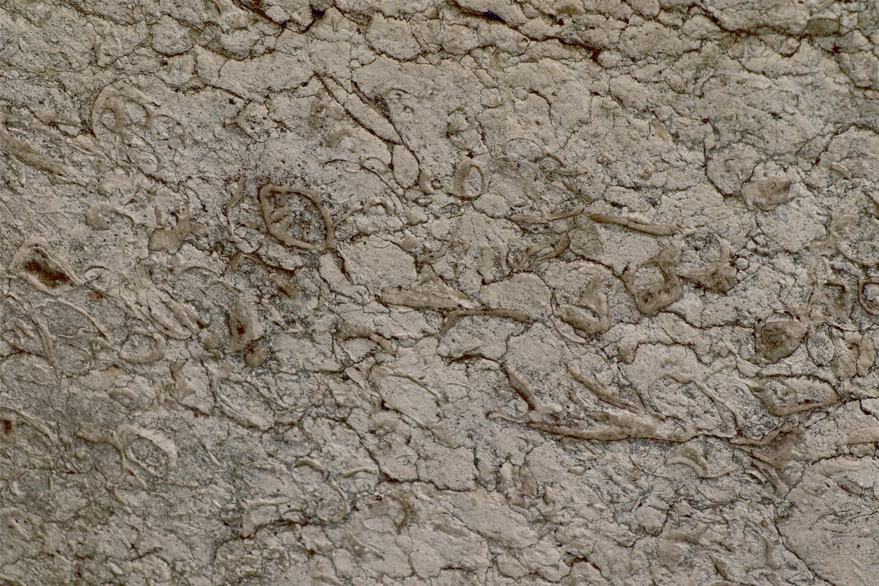 Многочисленные остатки рудистов в известняке Эшайон. Фото Антона Ульяхина, Париж, 26 апреля 2023 года