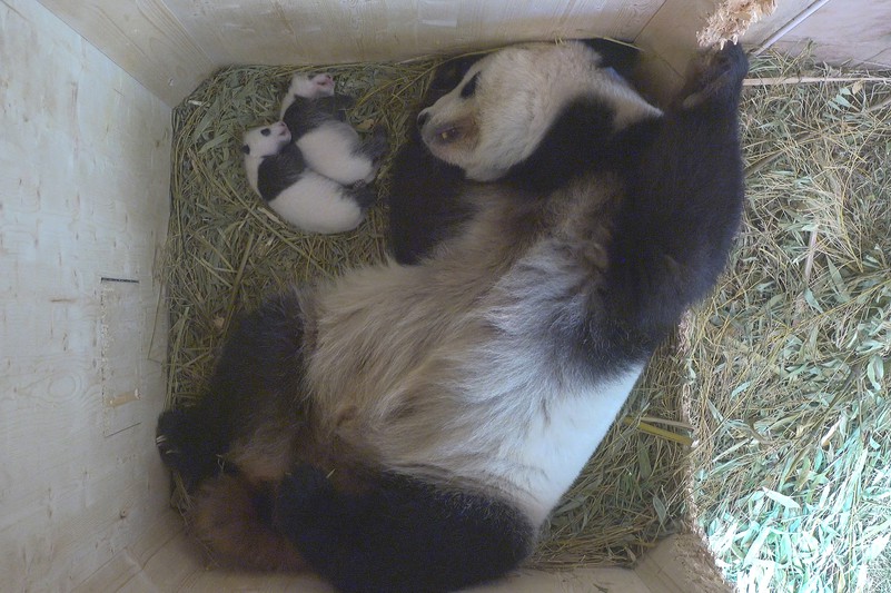 Ян Ян с новорожденными. Фото с сайта zoovienna.at