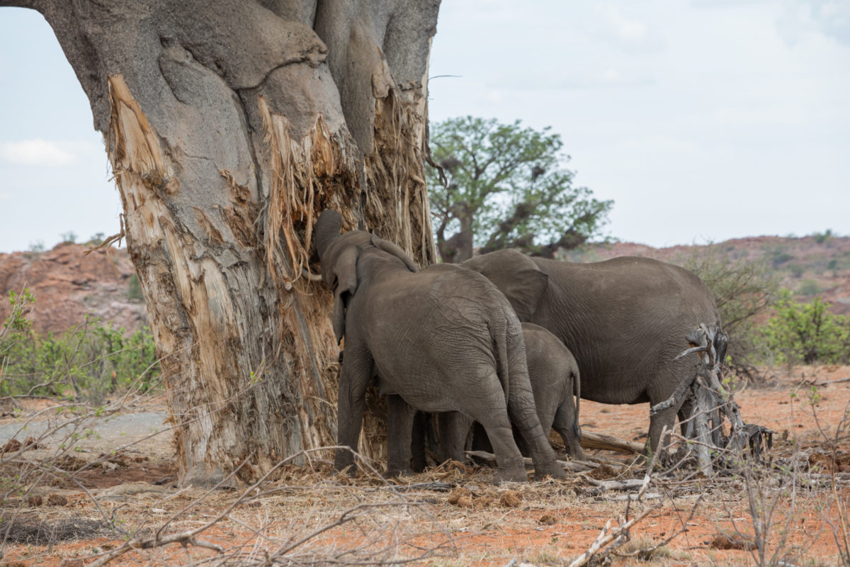 Слоны могут использовать бивни, чтобы обдирать кору с деревьев, что порой может приводить к гибели деревьев. К сожалению, по мере того как популяции слонов переуплотняются в национальных парках, местным деревьям приходится особенно нелегко. Фото с сайта news.mongabay.com