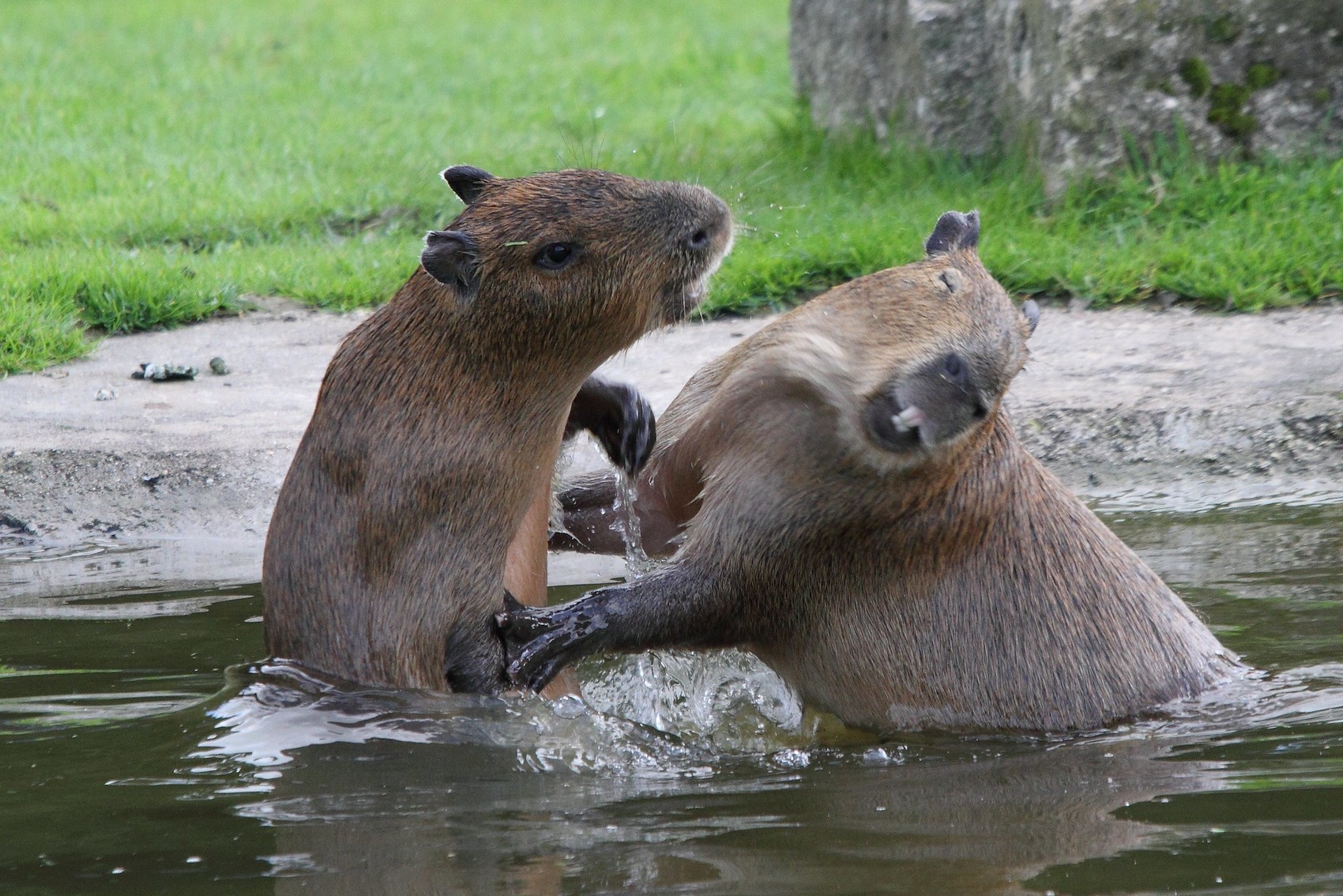 Игровая драка юных капибар. Фото © Mark Fryer с сайта flickr.com, зоопарк Марвелл (Marwell Zoo), Великобритания, 21 сентября 2011 года