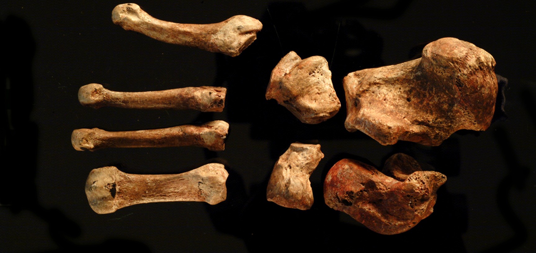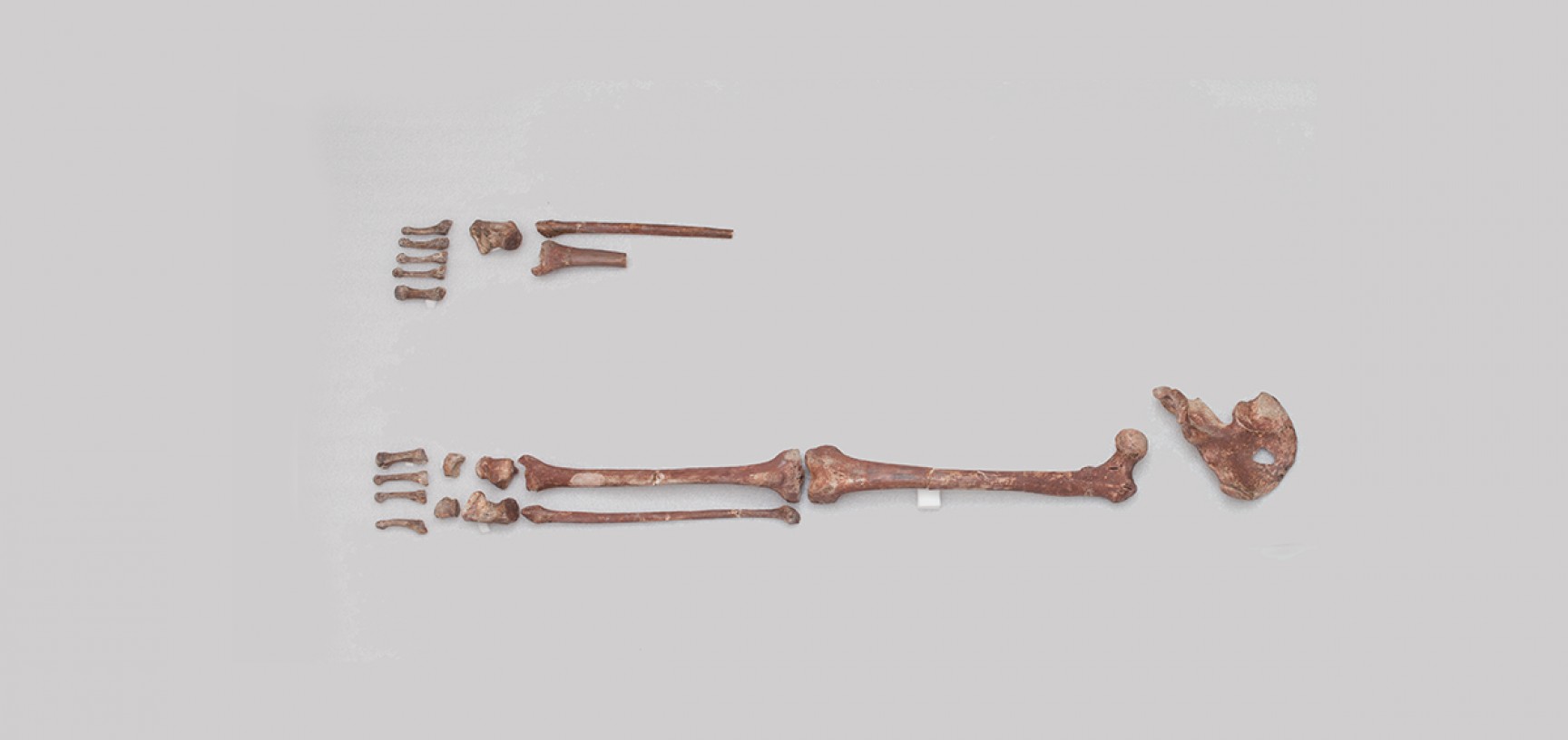 Но во время раскопок Бакленд наткнулся на кое-что поинтересней. На небольшой глубине исследователь обнаружил часть хорошо сохранившегося человеческого скелета без черепа, сильно окрашенного красной охрой (см. картинку дня Краски древнего мира: красная охра). Так в его руки попали ребра, часть таза, кости левой руки и обеих ног взрослого индивида.