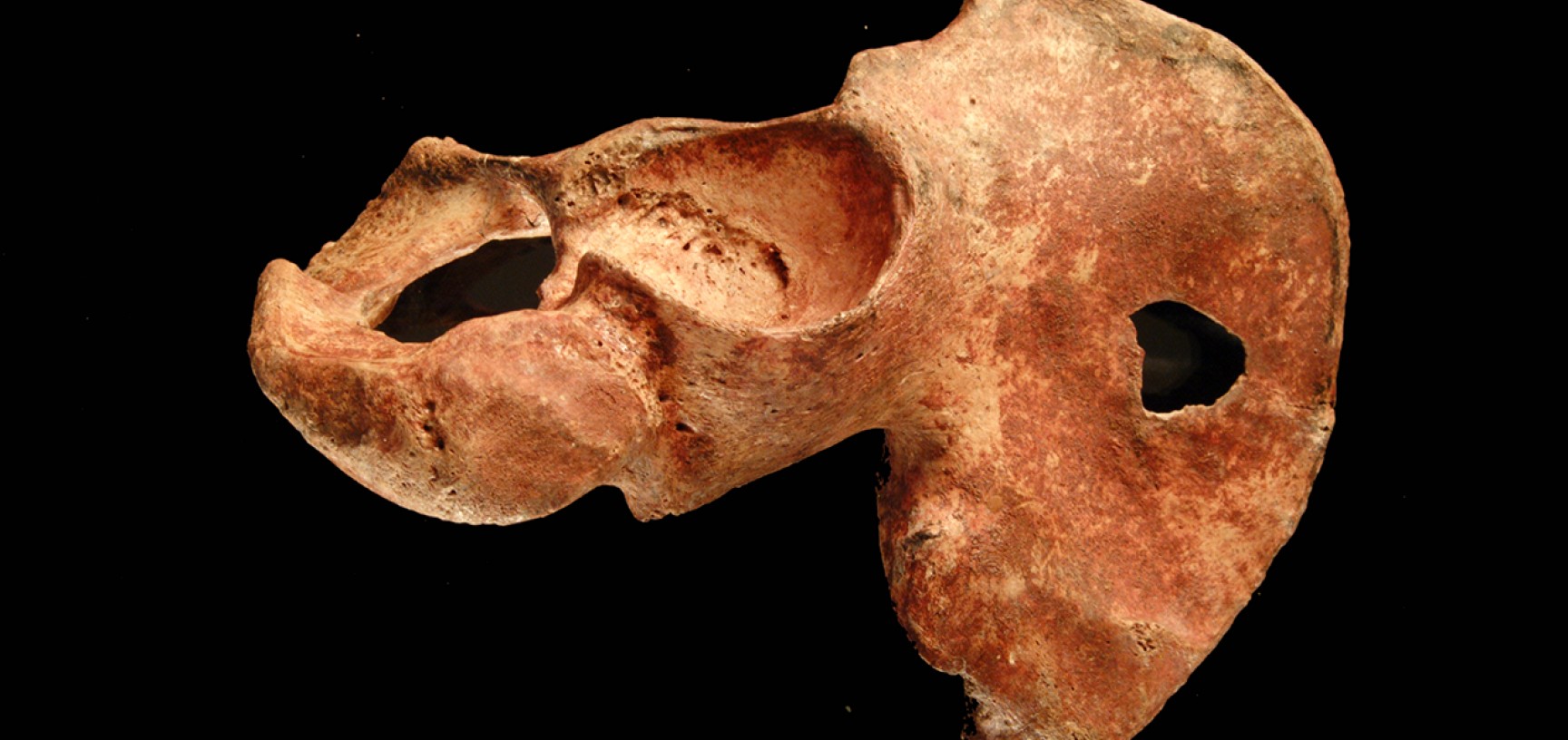Фрагмент таза «Красной дамы», покрытый красным минеральным пигментом