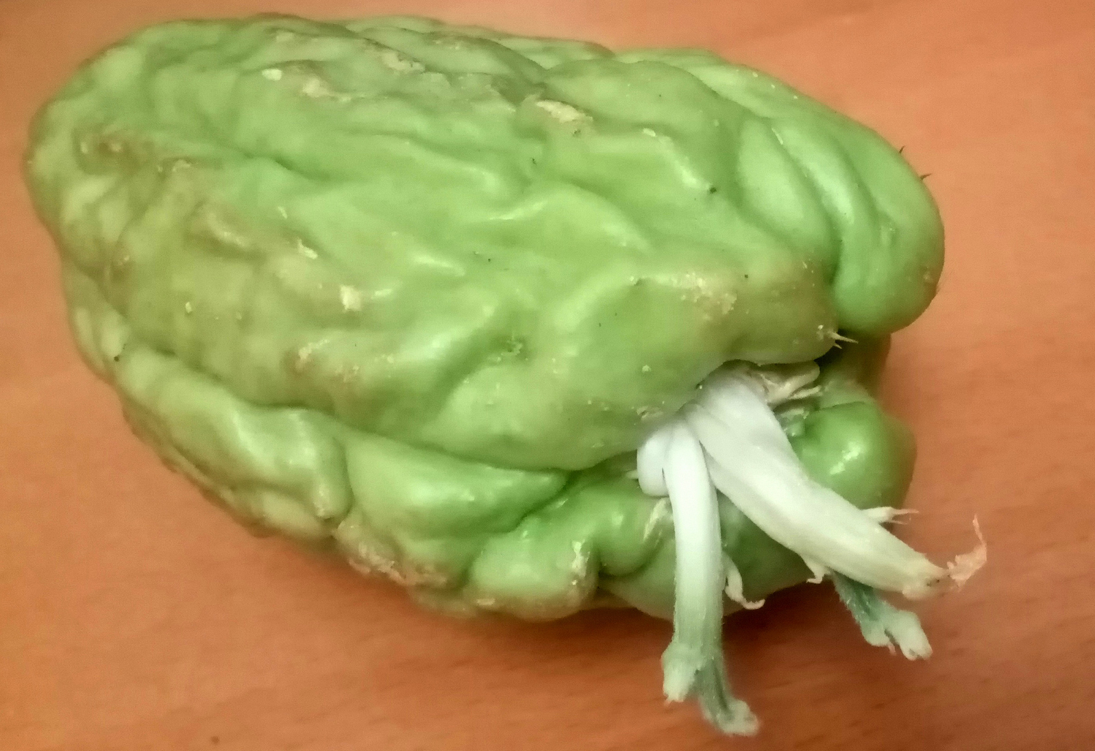 На фото — ростки, которые появились из зрелого плода чайота, или мексиканского огурца (Sechium edule). Это растение семейства тыквенных не рассчитывает на распространение животными, ветром или водой, а проращивает семена прямо внутри плода.