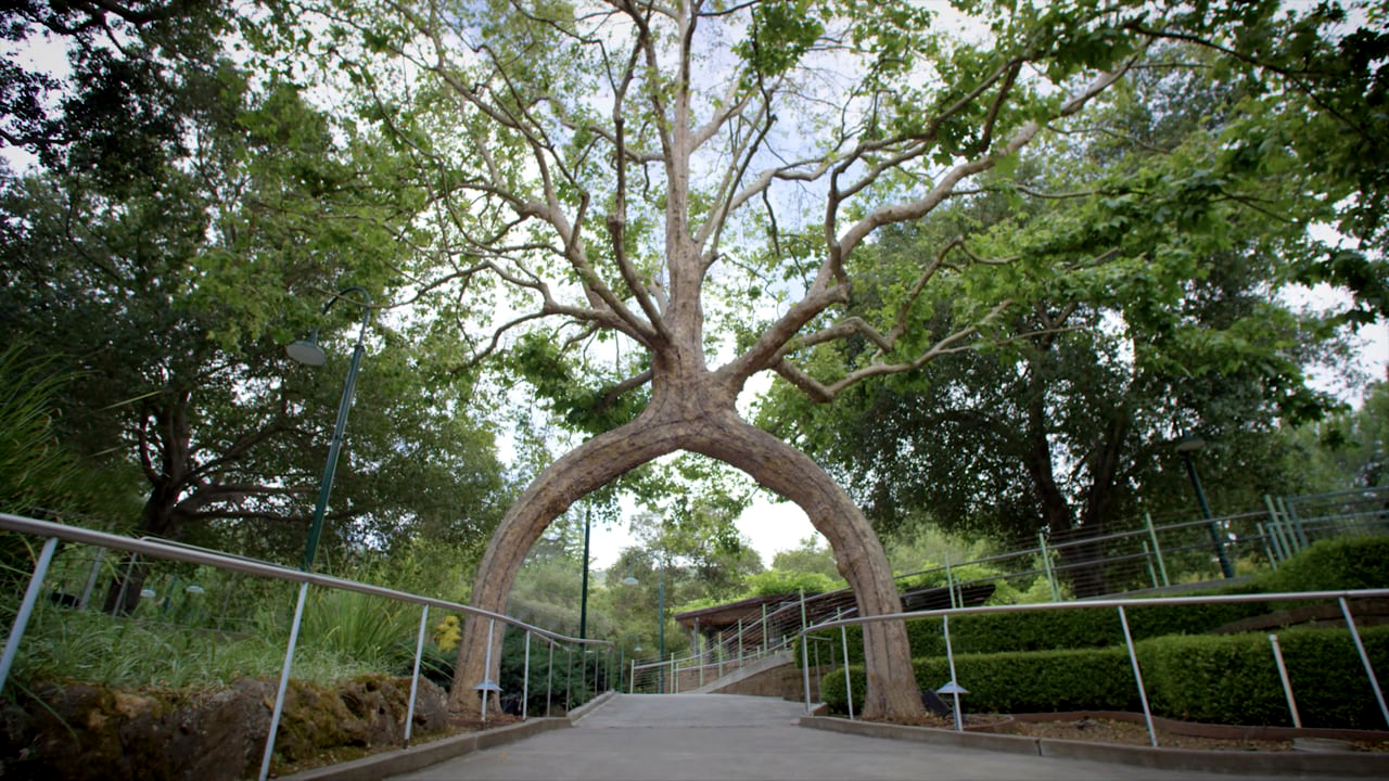 Двуногое дерево Акселя Эрландсона получилось путем сращиваня стволиков (когда они были молодыми и гибкими) двух деревьев. Фото с сайта oscarono.fr