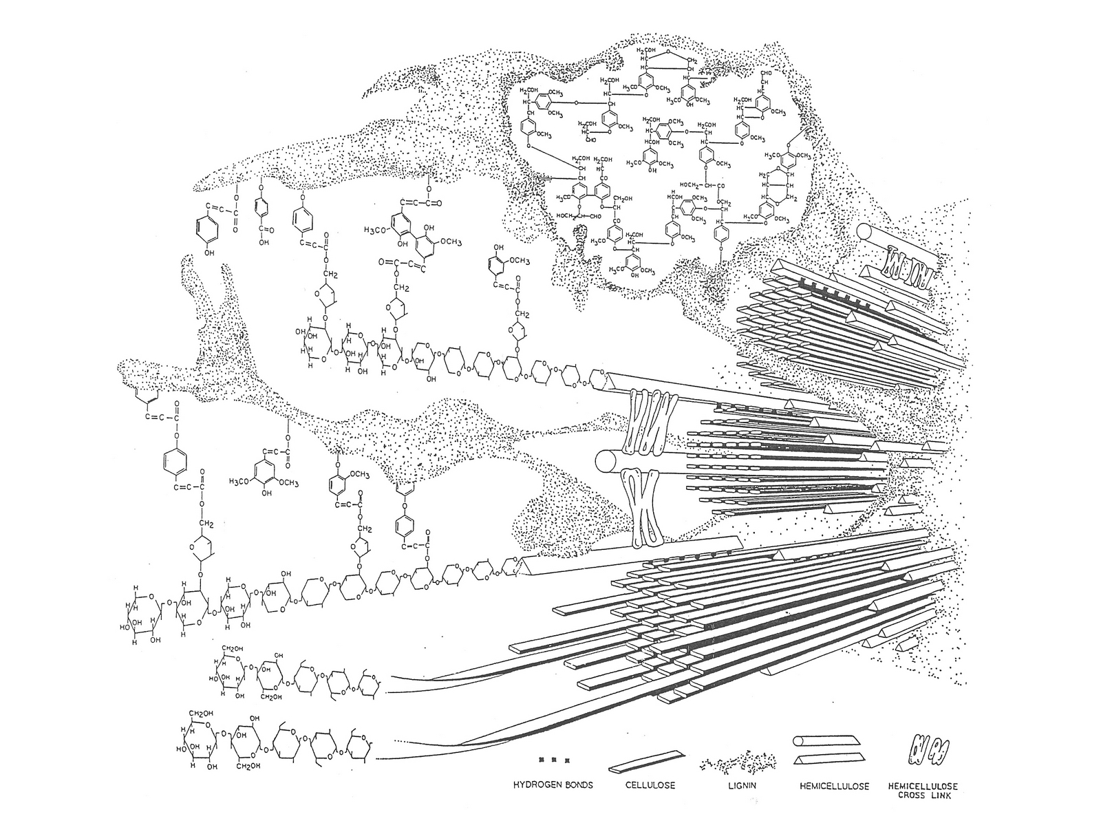 Схема, иллюстрирующая химический состав древесины. Рисунок из статьи G. Janusz et al., 2017. Lignin degradation: microorganisms, enzymes involved, genomes analysis and evolution