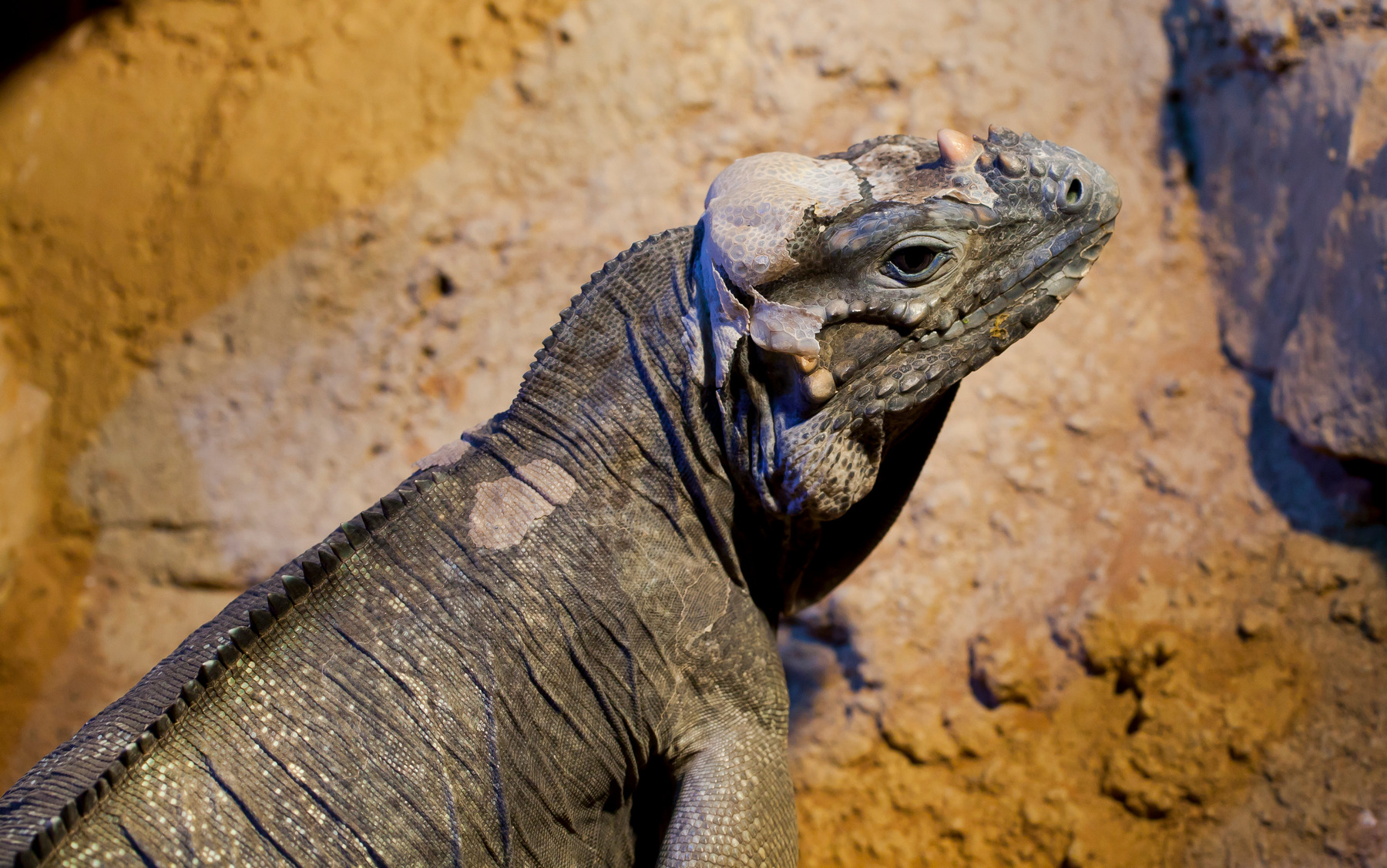 Голова игуаны-носорога: хорошо заметные довольно крупные «рога», возможно вдохновившие Мантелла разместить странный шип игуанодона у него на носу. И да, если вас испугали отваливающиеся от игуаны кусочки кожи — не пугайтесь, она просто линяет. Фото © Diego Delso с сайта commons.wikimedia.org, зоопарк Хеллабрунн, Мюнхен, Германия, 17 июня 2012 года