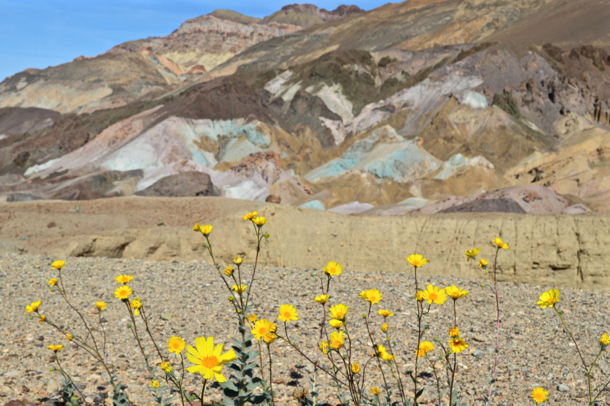 Когда весна вступила в свои права, цветы покрыли пестрым ковром каменистое русло пересохшей реки, невысокие горные гряды и чахлые, усыпанные гравием аллювиальные почвы у подножия западных гор Большого Бассейна (Great Basin mountains), включая Амаргосу (Amargosa) и хребет Панаминт (Panamint range). Ливневые паводки в октябре 2015 года и частые зимние дожди заложили основу весеннего бурного цветения (super bloom), какое бывает примерно раз в десять лет, когда каждому семени, ждущему в почве своего часа, удается превратиться в цветущее растение.