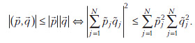 пропорциональны и коэффициент пропорциональности положителен, то (проверьте) cos θ = 1, а если коэффициент отрицателен, то cos θ = –1. Эту формулу для косинуса легко обобщить на случай произвольного N — нужно лишь поменять верхний предел у всех сумм. Неравенство Коши—Буняковского для числовых рядов гласит:
