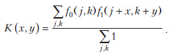 Здесь в качестве функций f0, f1 используются компоненты u или v отклонения скорости ветра на поверхности от среднего потока в два момента времени. Суммирование тут производится по всем точкам сетки (j, k) таким, что и она, и точка (j + х, k + y) лежат в указанном сеточном квадрате. Из рисунка 10 следует, что K(0, 0) ≈ 0,3 для u и K(0, 0) ≈ 0 для v, т. е. ветер слабо коррелирует с тем ветром, который дул всего 3,5 мин назад. Корреляция существенно больше, если учесть основной поток. Действительно,