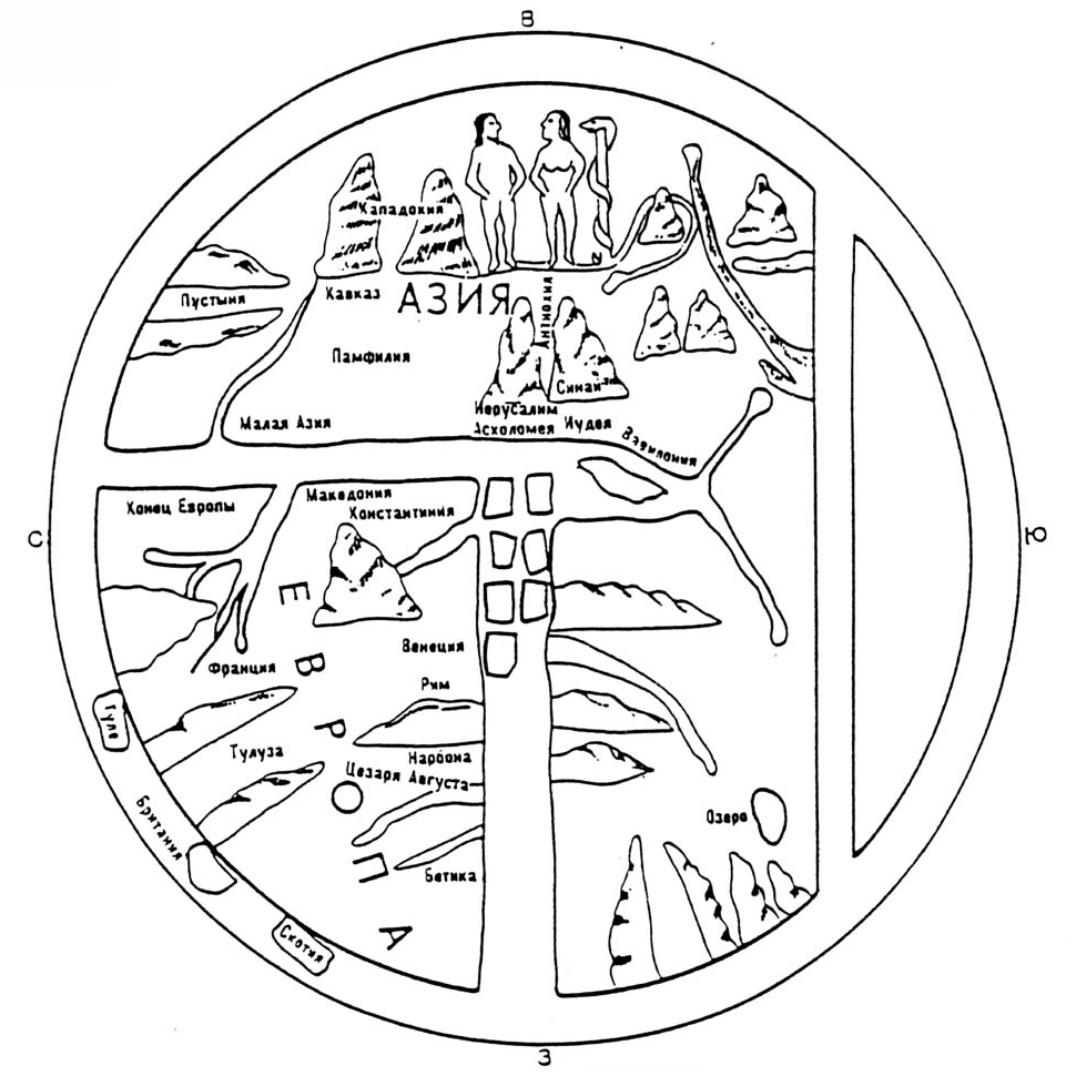 Представления Аристотеля о границах жизни на планете сохранялись и в раннем средневековье, хотя картографам того времени было явно не до географии населения. Полагая, что Земля — это плоский диск, закрепленный над водами и накрытый сверху хрустальным небосводом, они не очень заботились о достоверности своих произведений, а интересовались в первую очередь местонахождением библейского Рая, истоков Тигра и Евфрата, местообитанием библейских народов Гога и Магога и прочими животрепещущими теологическими проблемами. В середине господствовавших в то время монастырских карт-колес обязательно помещался Иерусалим — место «гроба Господня», а ориентировались они по востоку. Кстати говоря, отсюда произошло само понятие «ориентироваться» — определять направление на восток. По этой же причине алтарь, или престол, — жертвенник (от лат. altus — высокий) в христианских храмах располагается в восточной части.