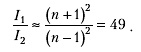 Поскольку свет, образующий первую радугу, отразился внутри капли только один раз, а свет, образующий вторую радугу, отразился внутри капли два раза, то приближенно можно оценить отношение яркостей (интенсивностей света) этих радуг так: