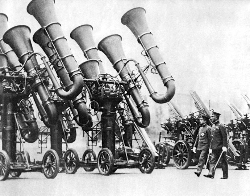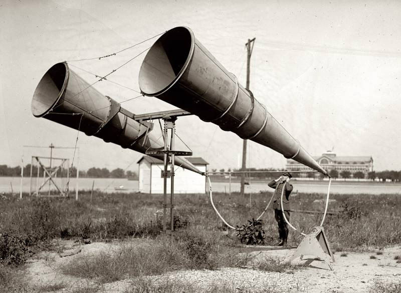 — Верно, умница! Отсюда и название — эхолокация. А бывает ещё пассивная звуко- и радиолокация, когда мы принимаем сигнал от постороннего объекта. Вот как у Васи с комаром! — папа снова улыбнулся и продолжил: — До изобретения радаров и сонаров люди пользовались именно пассивной звуколокацией. Когда появилась боевая авиация, для защиты от неё придумали специальные акустические локаторы — огромные трубы, направленные в небо, которые могли уловить звук винтов бомбардировщиков на расстоянии в десятки километров! Во время Великой Отечественной войны такие устройства использовались в блокадном Ленинграде. Но, я гляжу, вы уже устали...