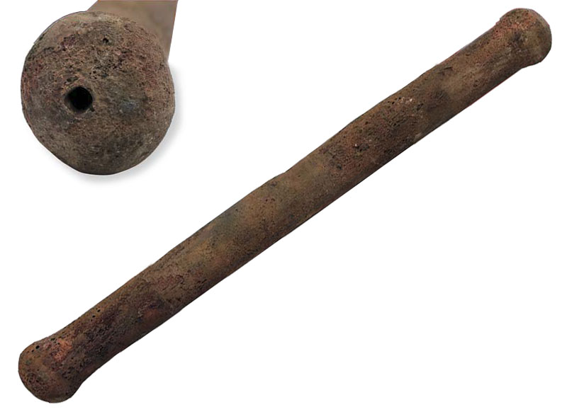 Используя комплекс методик, включающий в себя рентгеновскую и электронную сканирующую микроскопию, а также рентгеноструктурный анализ были исследованы одни из наиболее загадочных предметов, обнаруженных в курганах хунну — массивные медные стержни, закругленные на концах.
