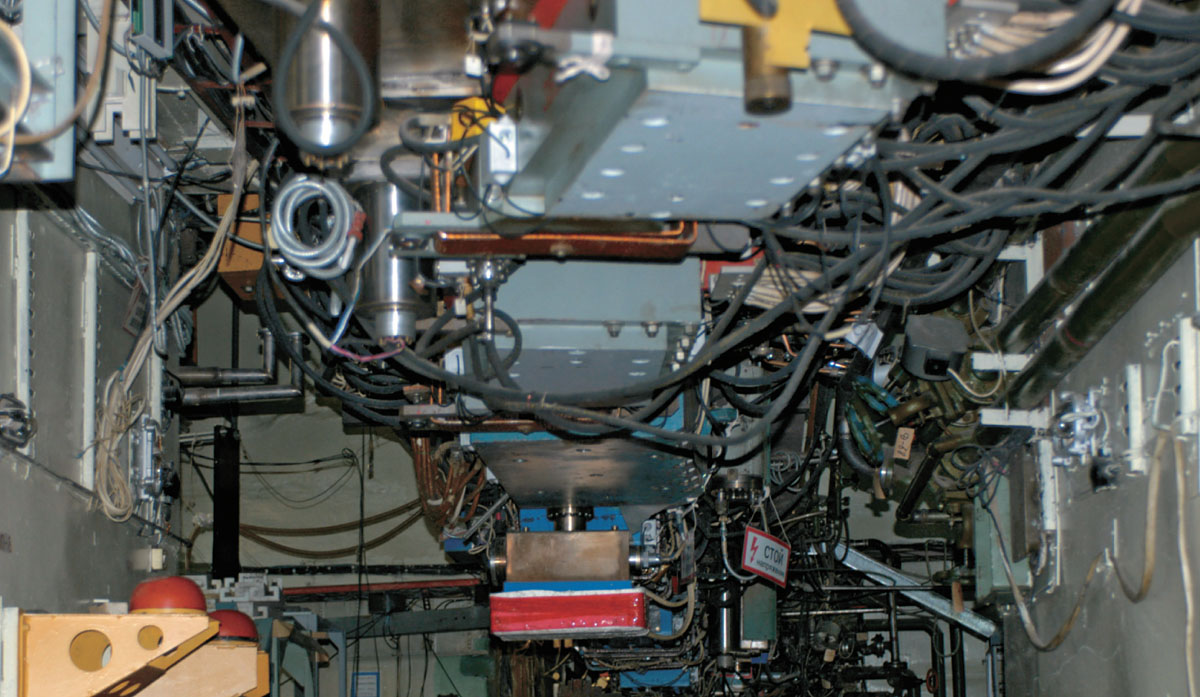 А это уже «живая» история ускорительной физики — бустерный синхротрон Б-4, где идет предварительное ускорение электронных (позитронных) пучков до энергии инжекции (360 МэВ) в накопитель ВЭПП-3. Вероятно, это единственный в мире работающий синхротрон, достигший «антикварного» возраста