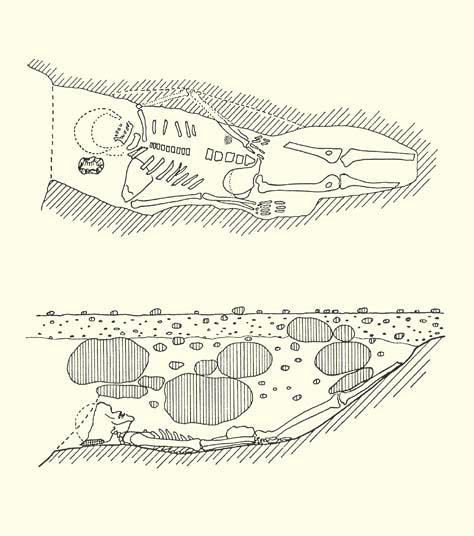 Однако на стоянке Маркина гора было раскопано погребение идеальной сохранности, уникальное среди верхнепалеолитических. Найденный скелет лежал в узкой яме в очень сильно скорченном положении, с коленями, притянутыми к груди, а пятками — к тазу. Уложить тело так невозможно, очевидно, оно было связано или тесно спеленуто. Сверху скелет был густо посыпан яркой темно-красной охрой. В самом погребении орудий не было, но, судя по взаимному расположению слоев, погребенный человек был членом группы городцовской культуры. Погребение датировалось не раз, его возраст по последнему определению относится к 36,2–38,2 тыс. лет назад. Таким образом, экземпляр с Маркиной горы оказывается одним из древнейших Homo sapiens не только нашей страны, а и Европы с Азией в целом.