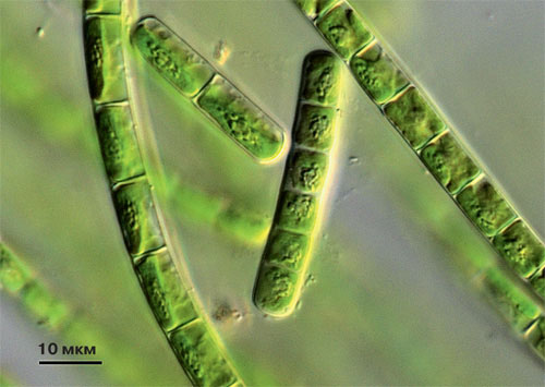 Харовые водоросли (Klebsormidium flaccidum) под микроскопом. Фото предоставлено Лирой Гайсиной, Башкирский государственный педагогический университет им. М. Акмуллы