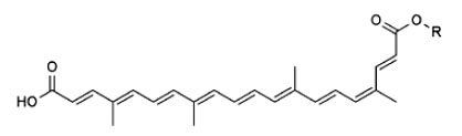 Эти соединения могут придавать продуктам оттенки от бледно-желтого до красного. Например, с помощью бета-каротина можно получить желтые и красно-оранжевые цвета, апокаротеналь же придаст продукту (кондитерским изделиям, мороженому, напиткам и пр.) глубокий оранжевый цвет. Окраска бета-каротина, конечно, хороша, более того, оттенки каротиноидов можно регулировать, меняя соотношение двойных связей в цис- и транс-конфигурации. Однако в чистом виде его использовать нельзя, поскольку бета-каротин не растворяется в воде, умеренно растворяется в маслах и к тому же быстро окисляется кислородом воздуха.
