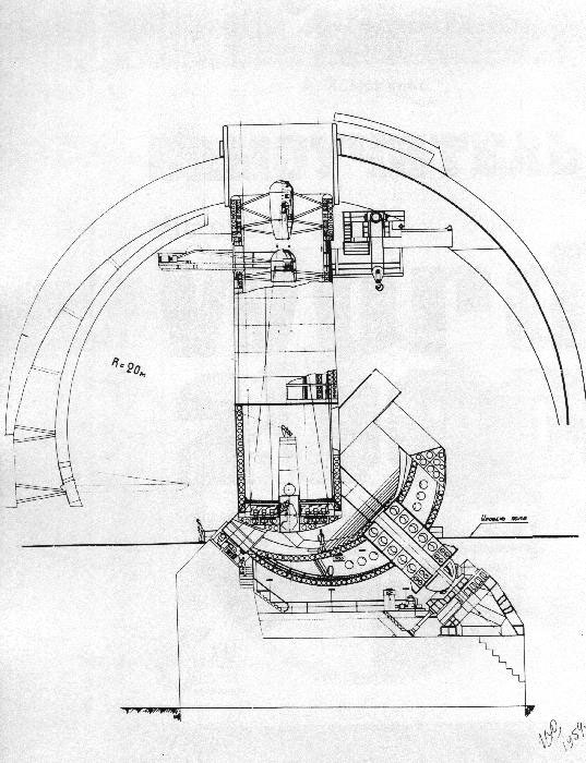 Телескоп РМ-700 в куполе. Авторы проекта — Б. К. Иоаннисиани, Ю. С. Стрелецкий (1959)
