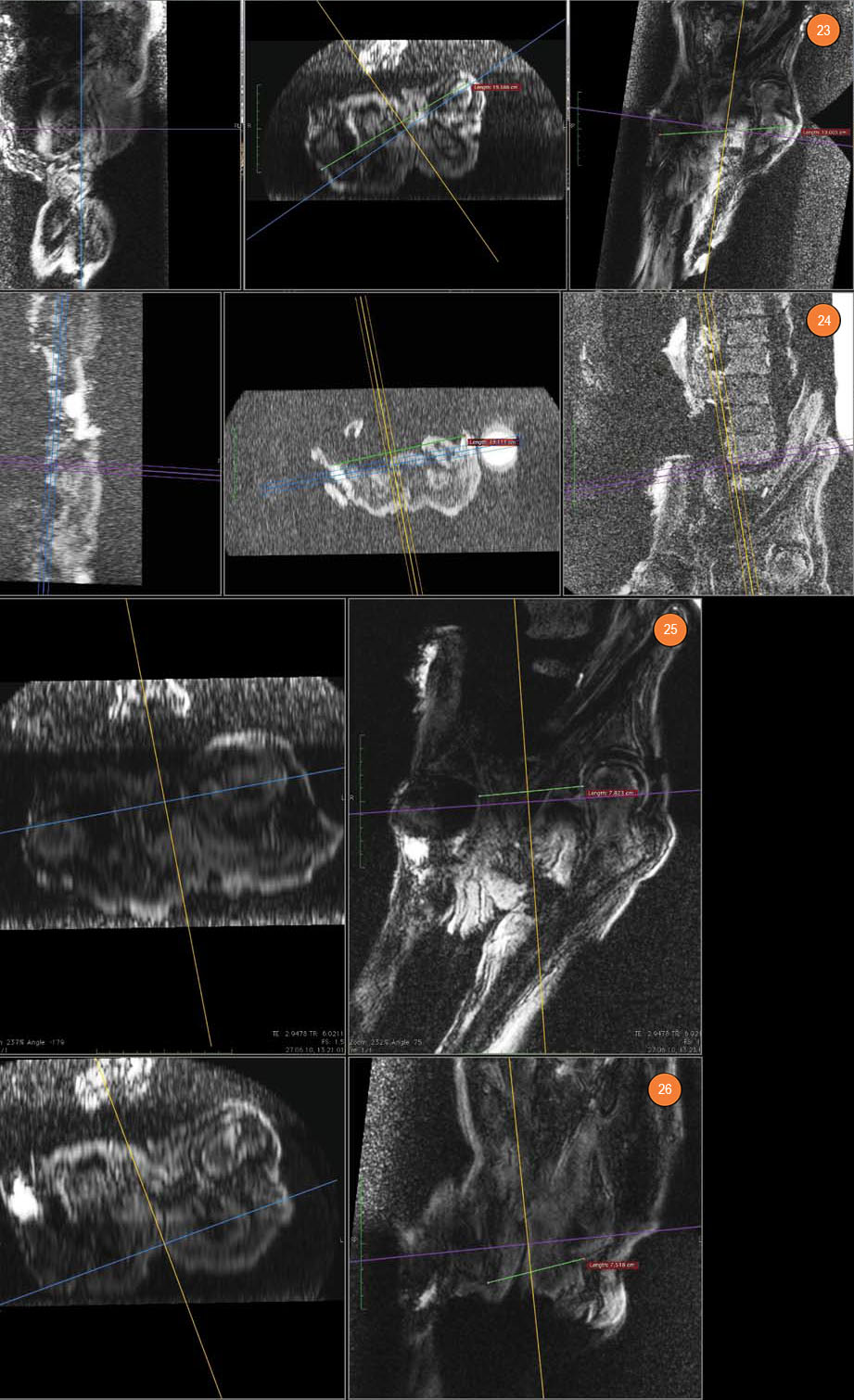 Поскольку пояс нижних конечностей у мумии при томографии находился не в ортогональной позиции, для измерения размеров малого таза пришлось использовать технологию 3D MPR.
