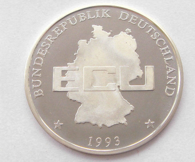 По первоначальному плану предусматривалось введение в качестве общей европейской валюты экю (ECU — сокращение от англ. European Currency Unit). Сначала в виде безналичной валюты с последующим выпуском в обращение банкнот и монет. Безналичный экю когда-то довольно успешно конкурировал в Европе с американским долларом. В ряде европейских стран выпускались «пилотные» монетовидные жетоны — для коллекционеров. На их гурте иногда помещали надпись о том, что этот жетон не является официальной монетой и не может служить платежным средством (рис. 1, 2).