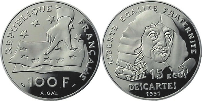 Рис. 6. Французская серебряная монета с портретом Декарта